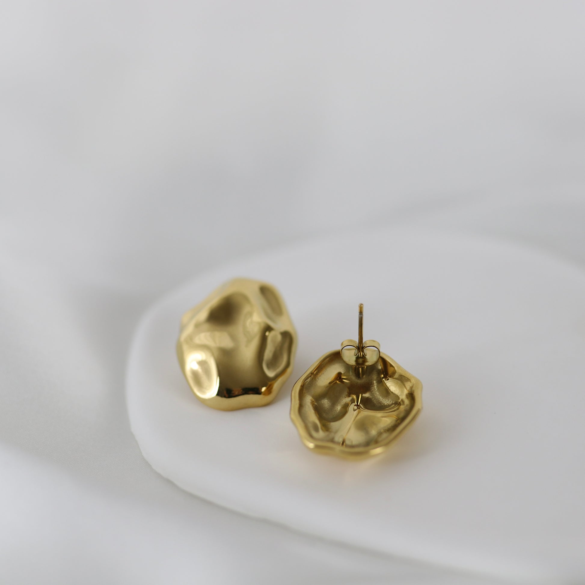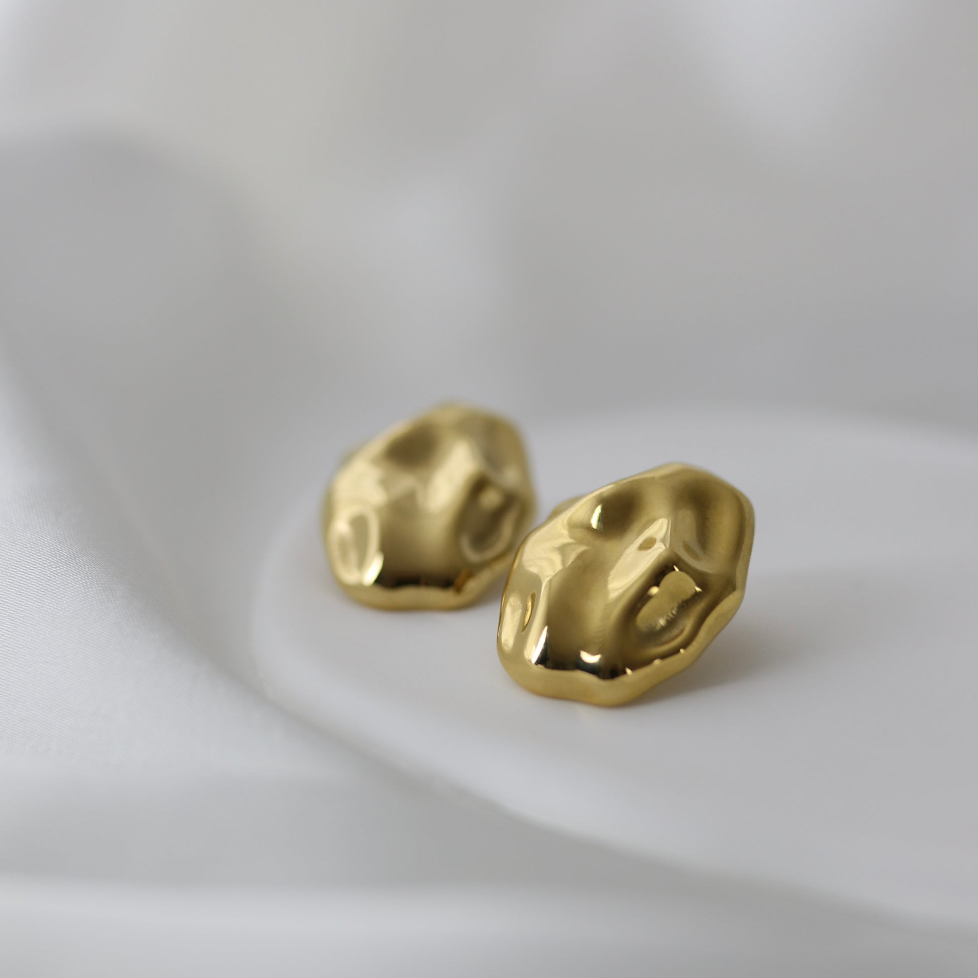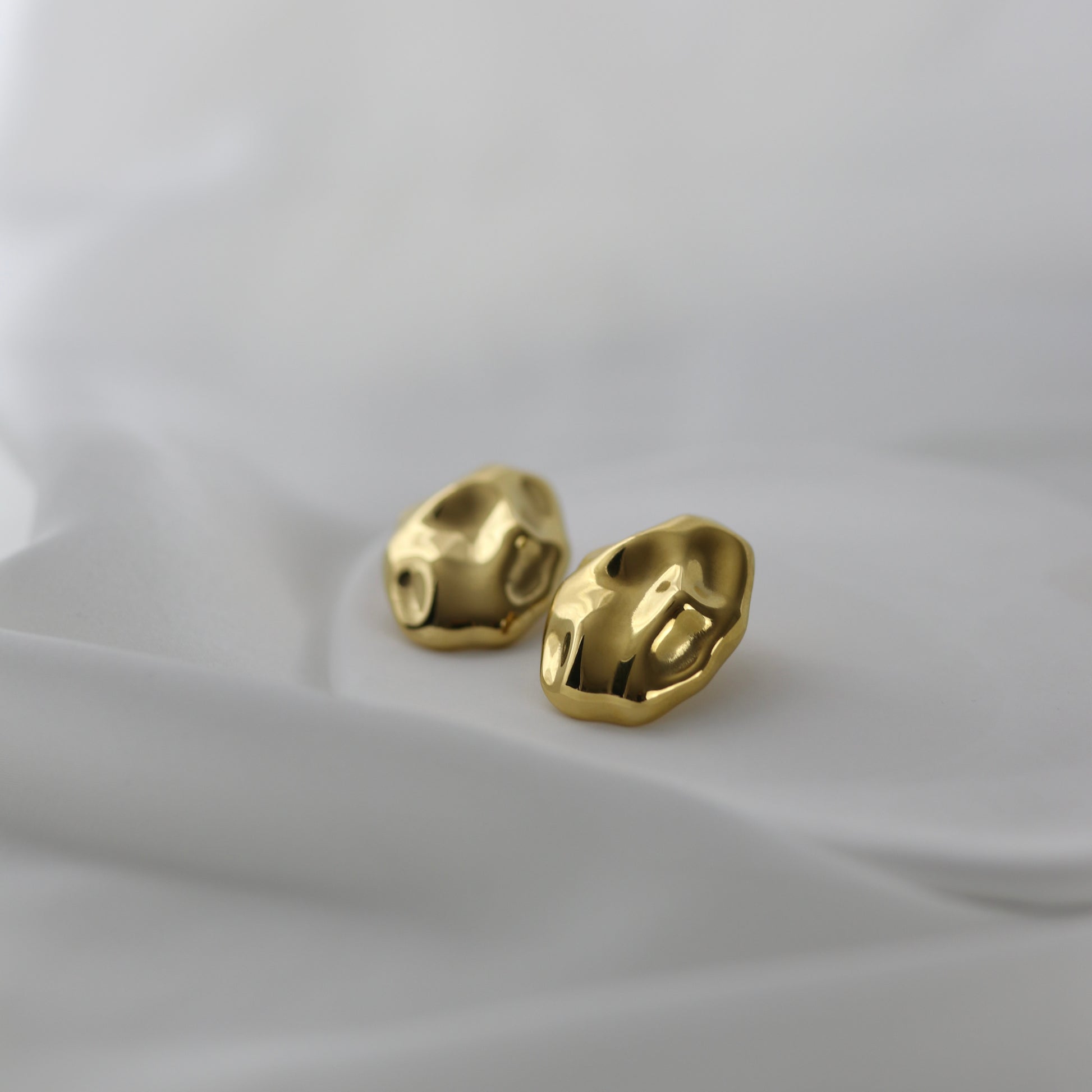 Wie sanft geschmolzenes Gold, das seine eigene natürliche Form gefunden hat, tragen diese Ohrringe eine fließende, organische Struktur in sich. Jede Kontur wirkt lebendig, als wäre sie aus Wärme und Bewegung entstanden. Das Licht gleitet über die Oberfläche und erzeugt eine Tiefe, die den Blick festhält – und dieses leise Gefühl hinterlässt, bei dem man beim ersten Anblick einfach dahinschmilzt.